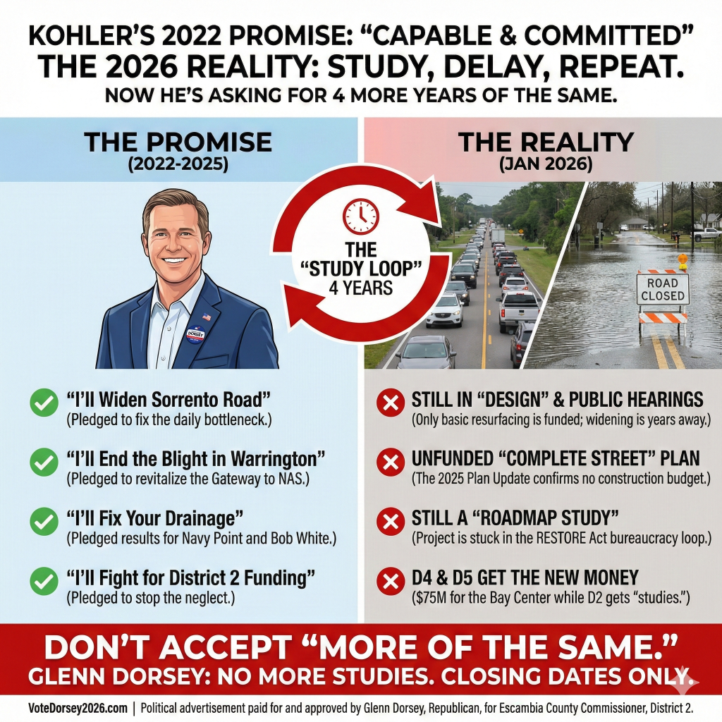 The defining theme of the last four years has been the “Study Loop.” This is the cycle where urgent projects are announced with great fanfare, only to be quietly tucked away into years of engineering studies, public hearings, and re-designs. While other districts break ground on major new facilities, District 2 is told to wait for another report.